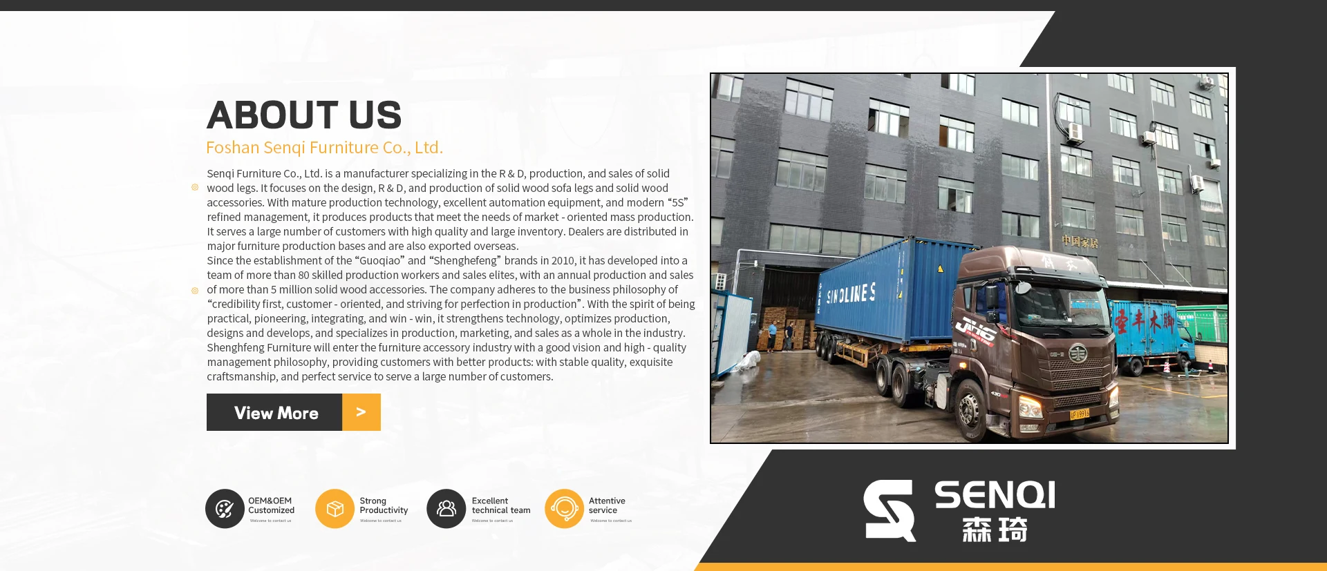 We have the auto cutting solid wood machine and the auto lacquer painting system, focus on the design research and development of the wood legs, leading the fashion trend and also can offer the professional OEM service for clients' custom made requirement.